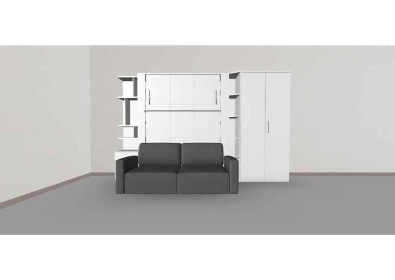 Când nevoia vă împinge să desfășurați mai multe activități distincte intr-un spațiu mic, fără a compromite stilul și confortul, setul cu pat rabatabil NOVA, ACORDEON WARDROBE,SMALL BOOKCASE&SOFA SET(150X200) este soluția cea mai buna.